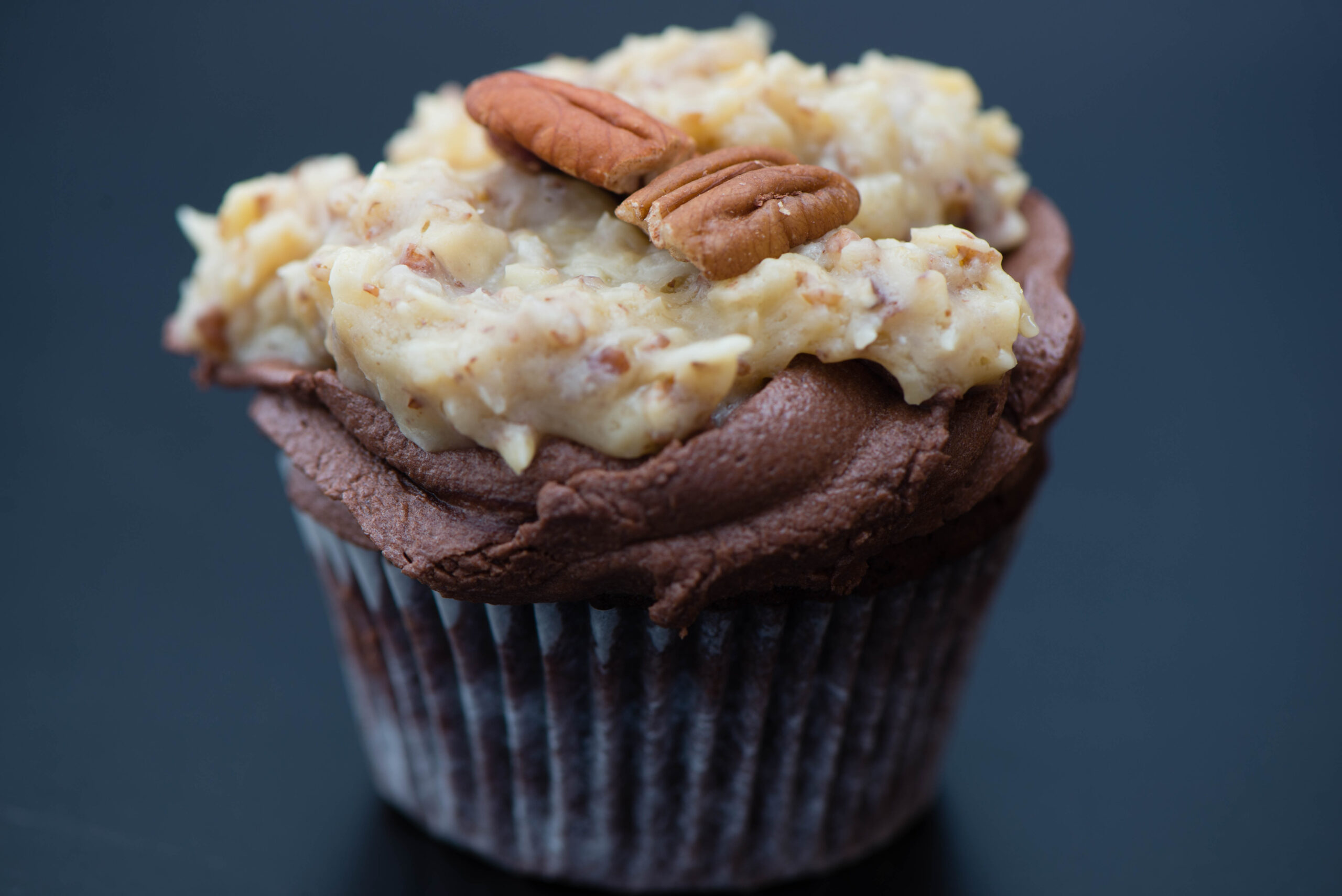 Anyways, enough about the who and the why, let’s get to the food, which is obviously the reason you are really here. Growing up, before I started learning how to cook from scratch, I remember my dad was a big fan of German Chocolate Cake. The decadent coconut pecan frosting generously spread over a light chocolate cake. As I am not at all a chocolate fan *scrunches my nose* and there is just the two of us, it wasn’t reasonable to make an entire cake. A cupcake variation seemed like the perfect answer, allowing my husband to take any “unwanted” leftovers to his coworkers.